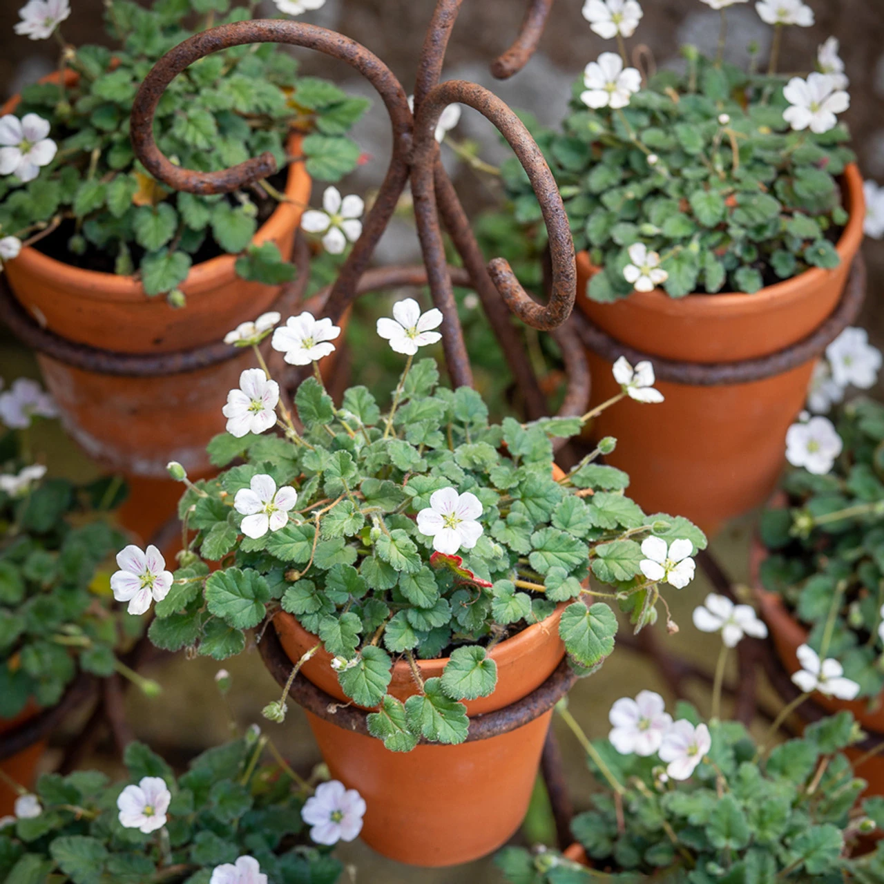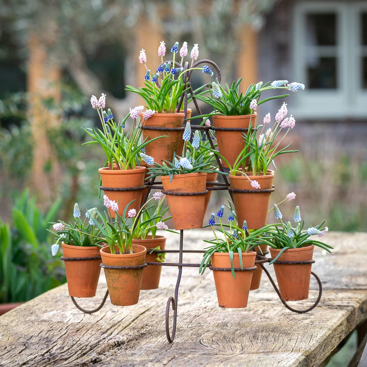 This is how primulas and polyanthus are best seen, en masse growing in terracotta pots, and the same is true of many small and delicate plants such as snowdrops and violas. We had this stand designed especially for us and it holds our small Terracotta Pots perfectly. I also use the Auricula Stand for special table displays, filling pots or bowl with flowers and candles, perfect for summer garden parties or other celebrations. It will rust gently over time.