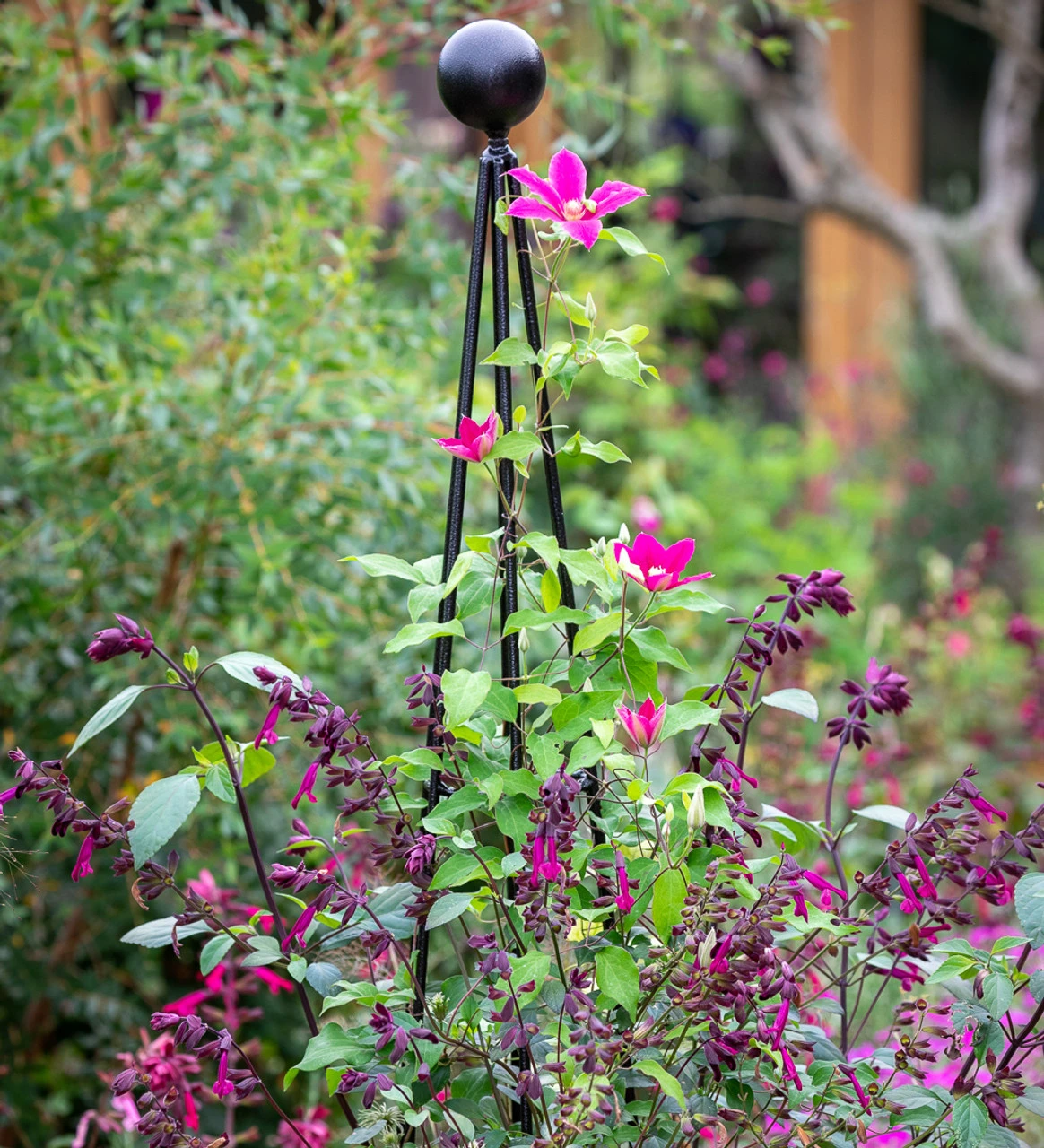 Sturdy steel obelisks, with a small footprint, which makes them ideal for climbers planted in containers.