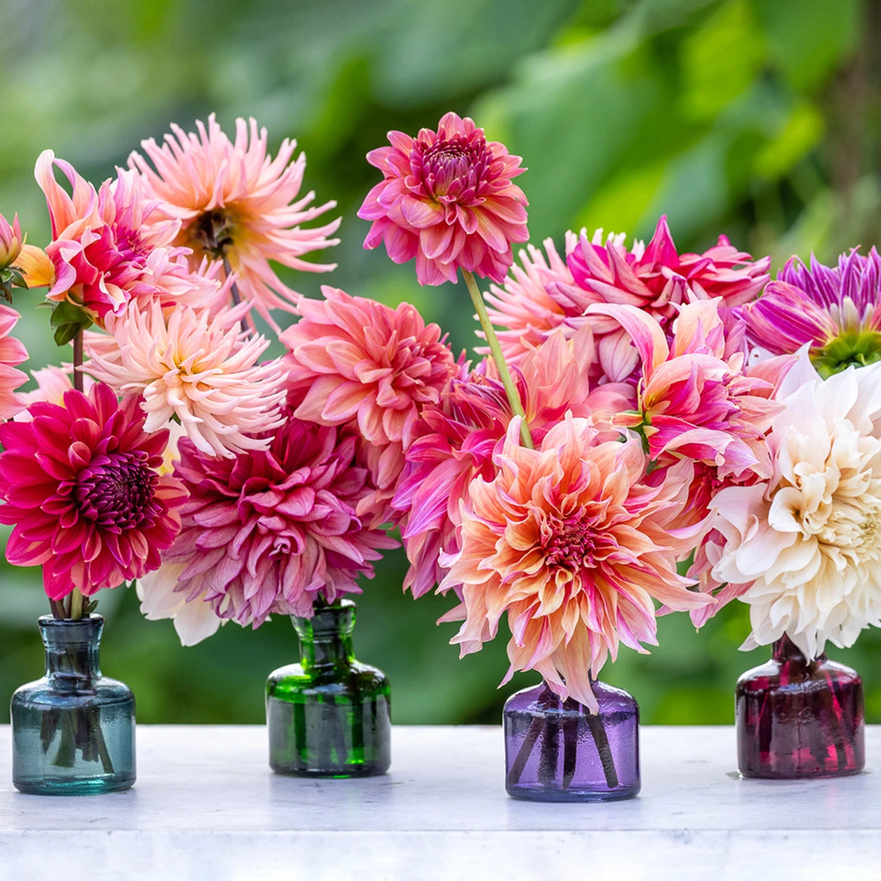 Use these for little posies or single stems. In a lovely range of jewel-like colours.