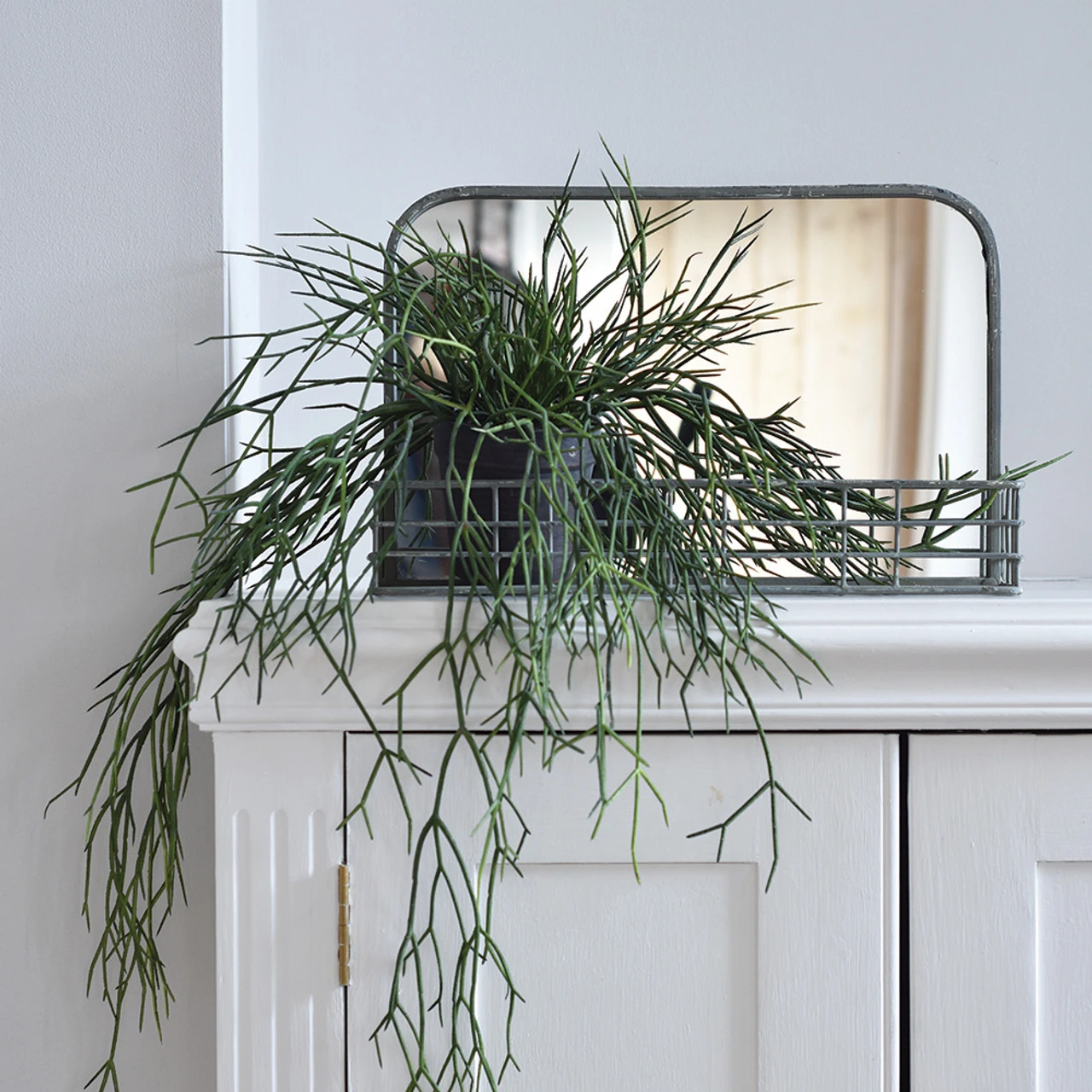 A dainty mirror, with the useful inclusion of a wire shelf. A charming addition to any room.