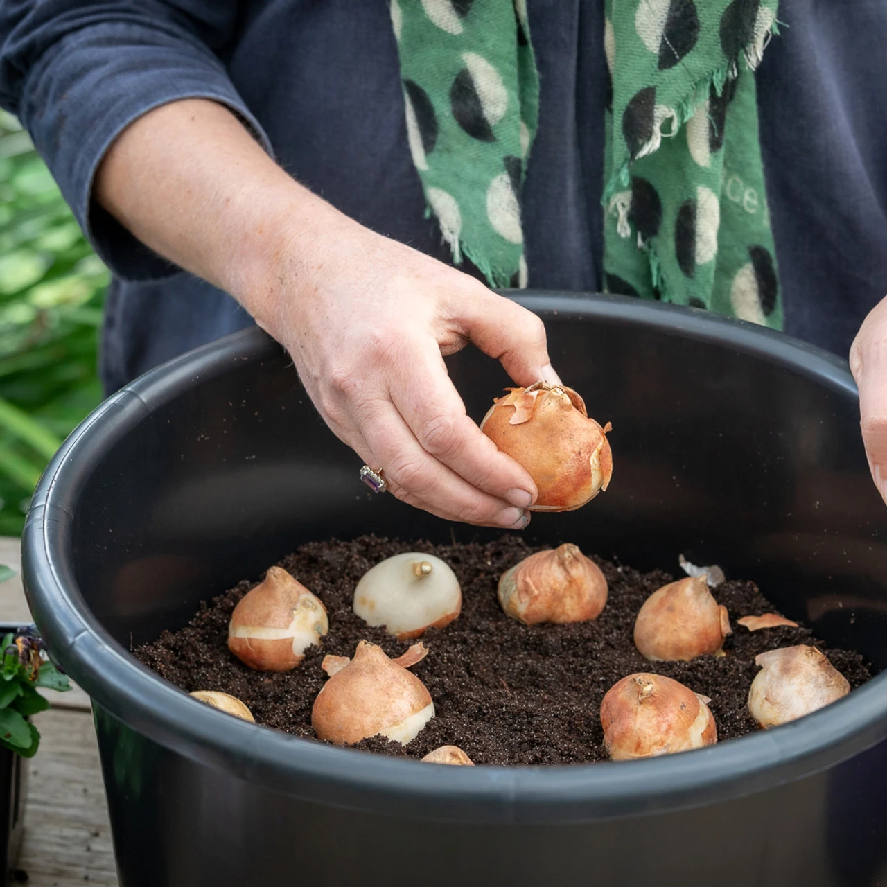 In autumn, use them to plant your spring flowering bulbs. You can then easily slot them into beds and containers when your winter bedding looks tired. Or in spring, use them for your dahlias then sink the whole pot into the ground for easy lifting in very cold spots, or into our larger Ribbed Planters. Reusable year on year.
