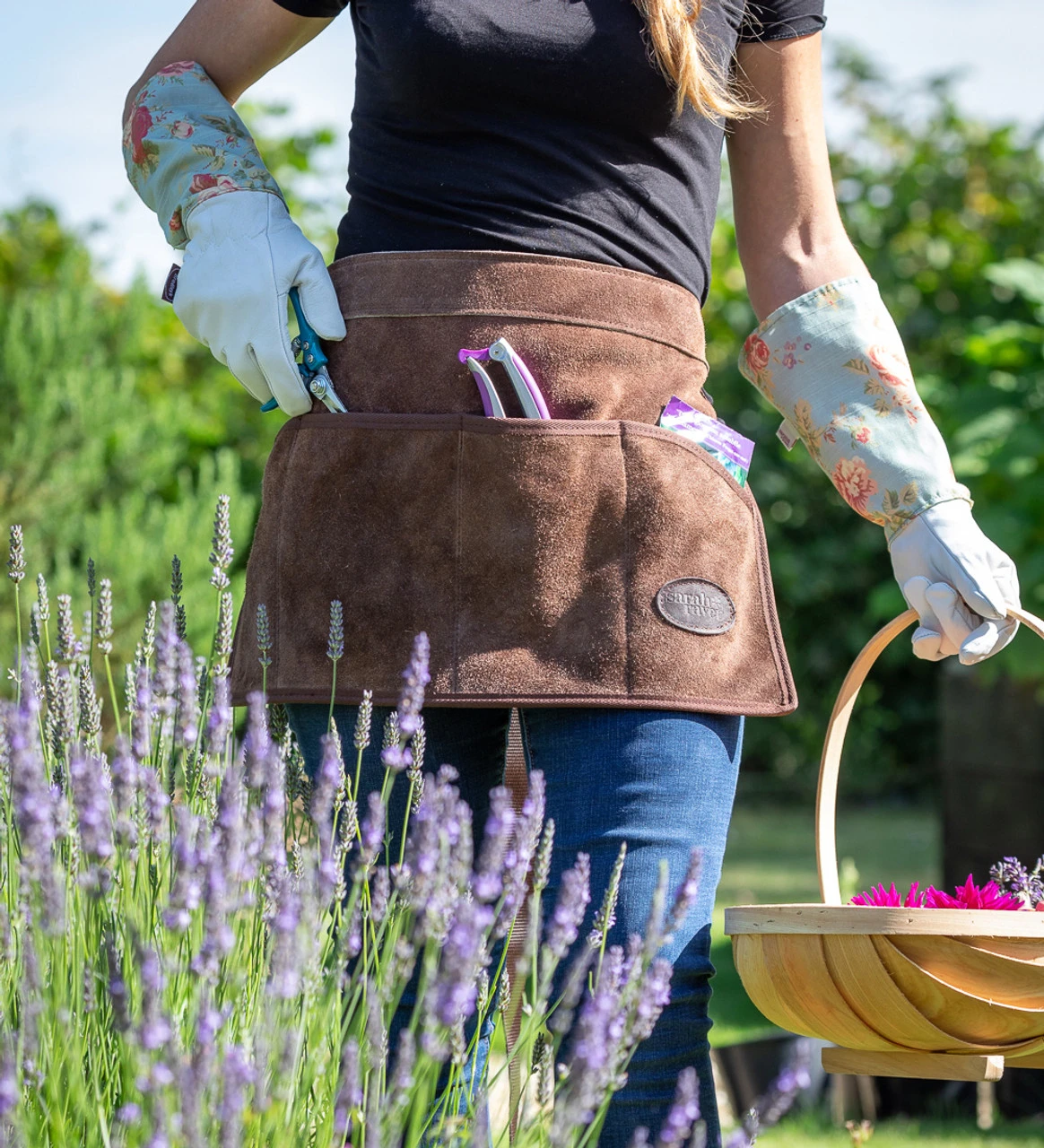 Exclusive Sarah Raven branded, handmade in the UK, classic look in a dark brown suede. Our tool apron not only protects your legs from brambles and dirt but is great for storing your tools as you get through your garden tasks. Adjustable waist strap, one size fits all.