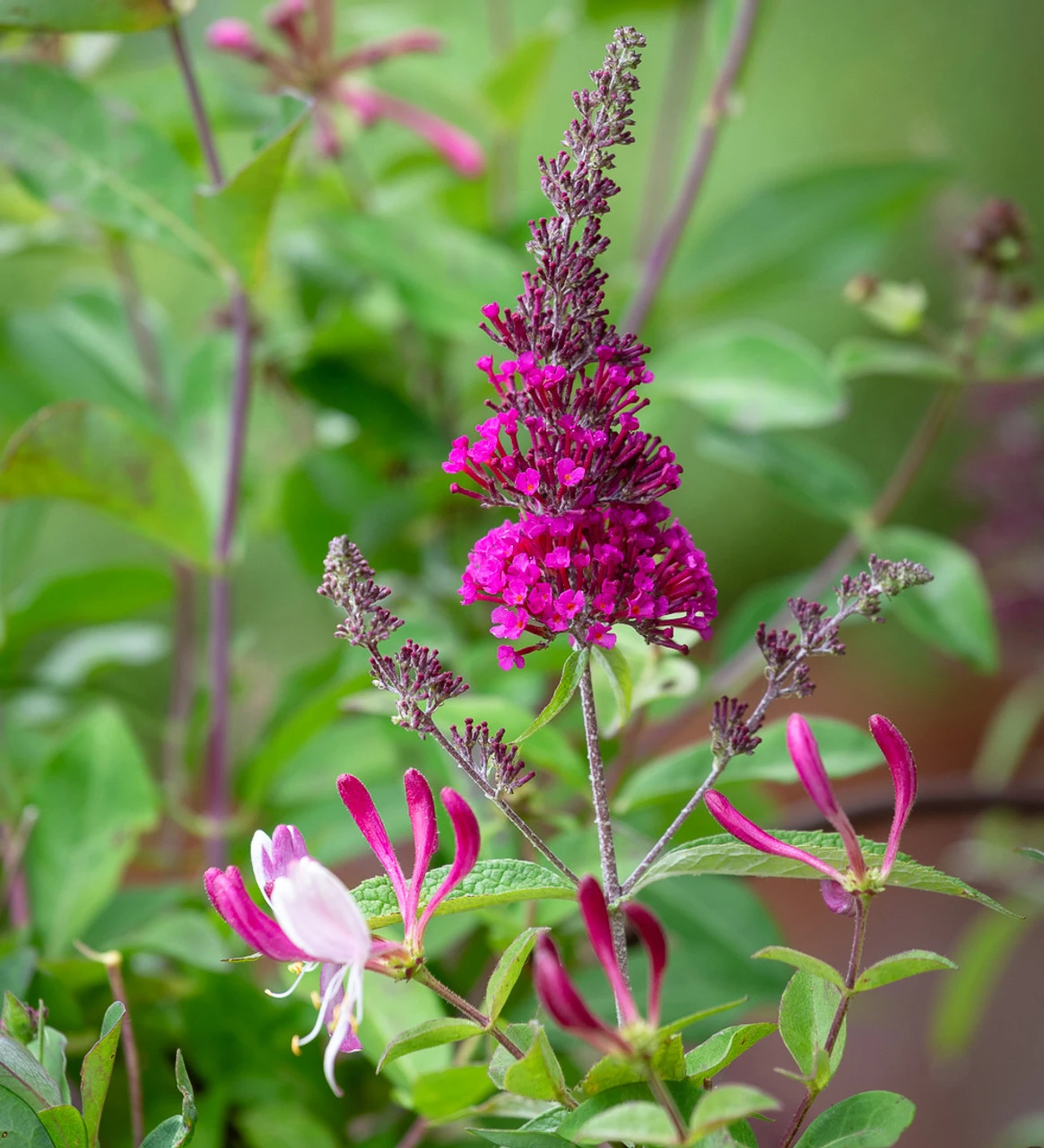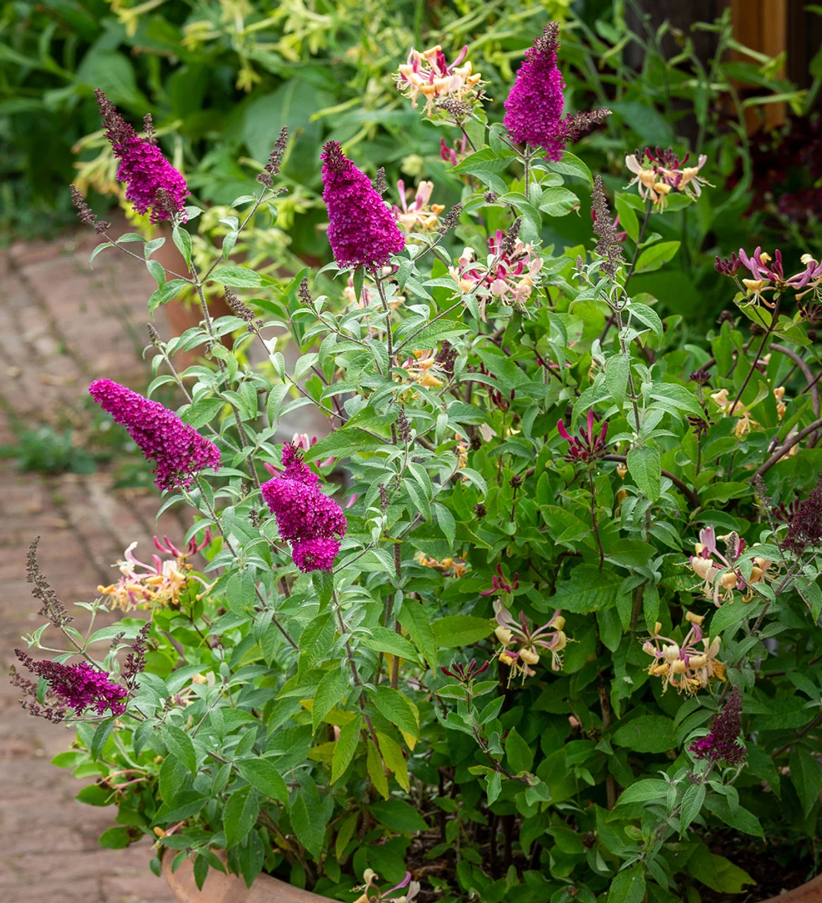 Moist soil and good air circulation will keep plants healthy. Prune honeysuckle back by about one-third in late summer, immediately after flowering. Prune the buddleia back annually in early spring to around 15cm above the base.