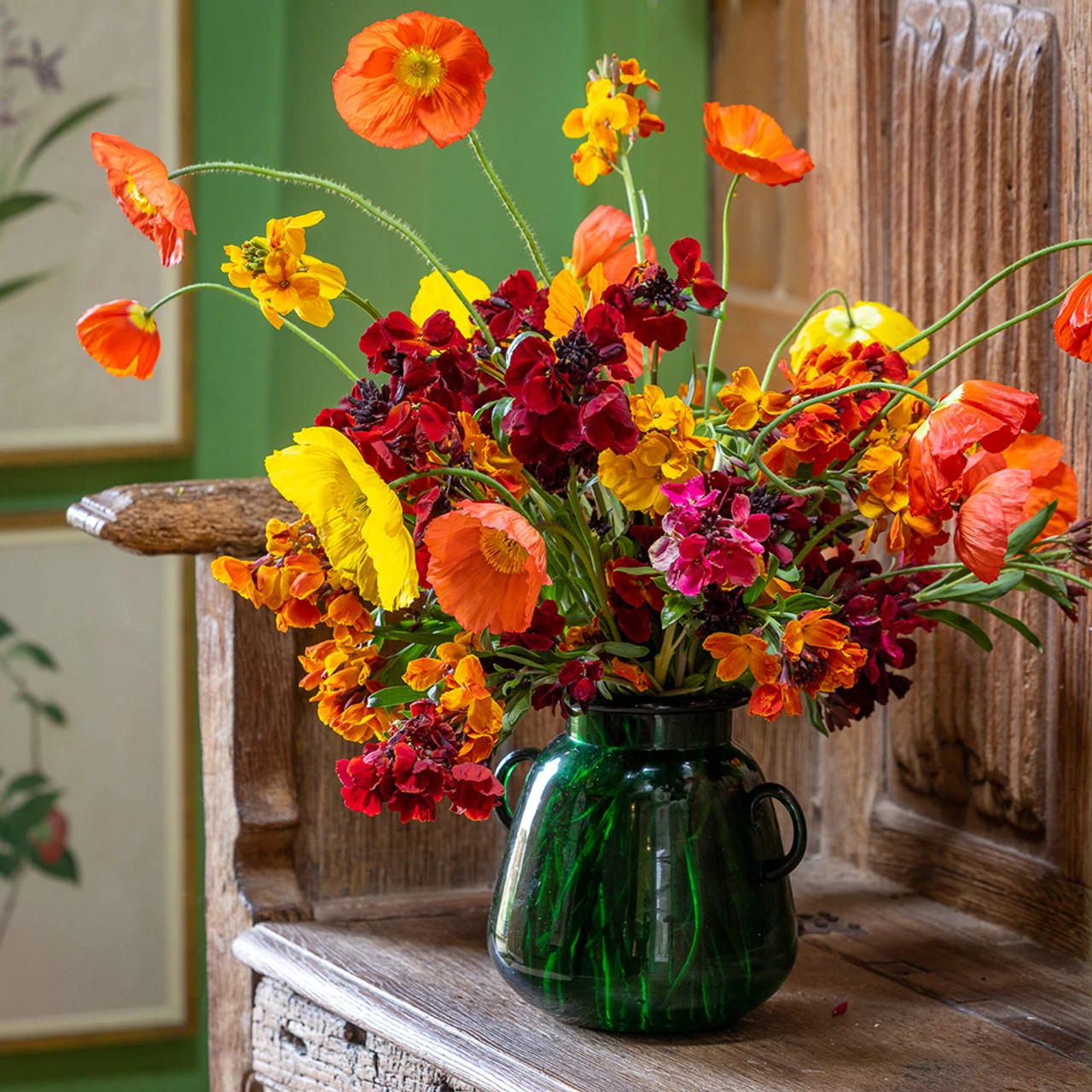 Glorious shapes, textures, and scent in a vase – and all the better because they flower so early, ready to harvest before the middle of spring. Both the poppy and wallflowers are cut-and-come-again, so by picking, you perpetuate rather than curtail the garden glamour and have plentiful vases for the house too.