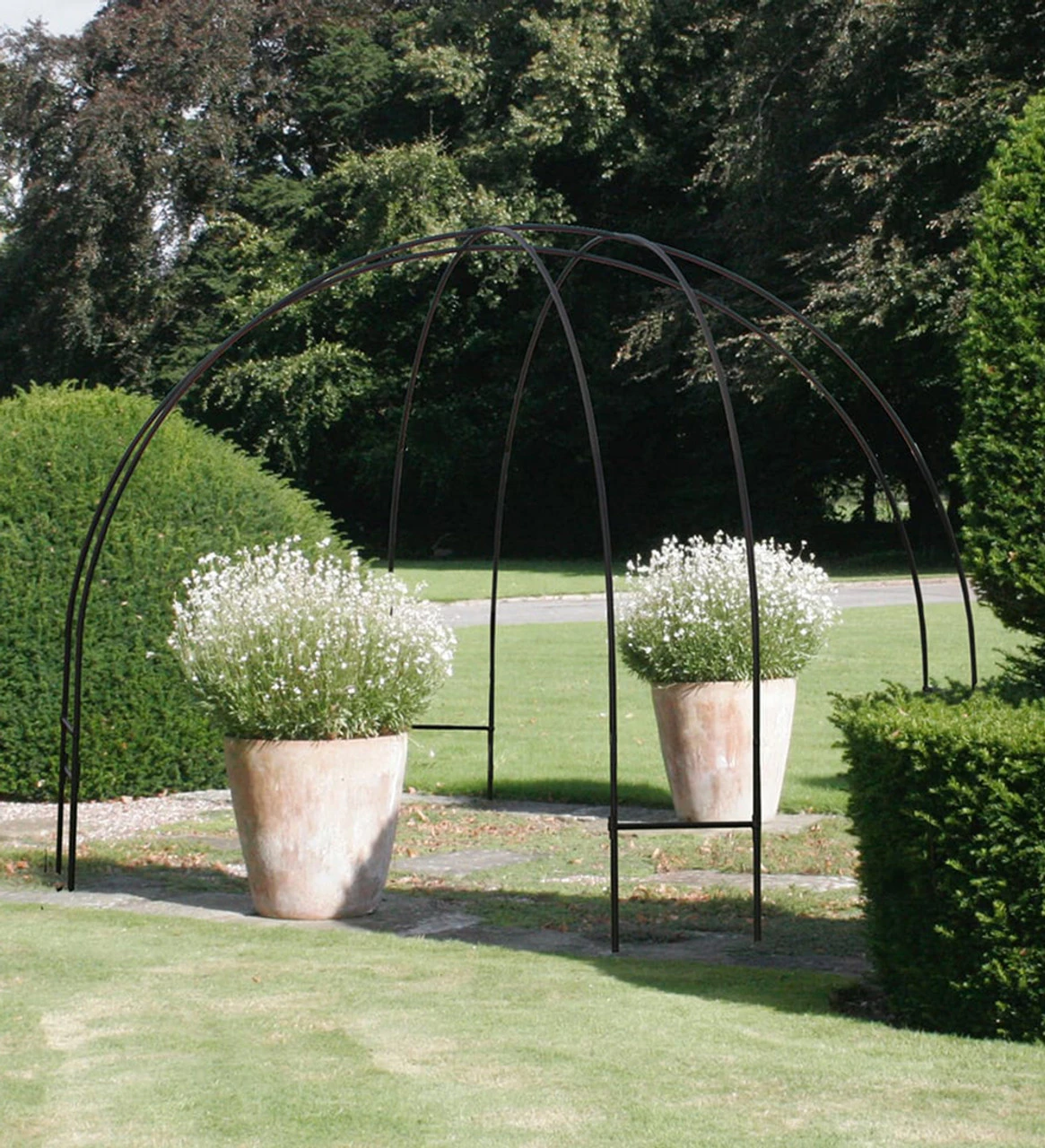 An Agriframes plant support. This contemporary standalone-style Dome makes for a perfect structure to use where paths cross, or to provide a focal point to the end of a pathway. It is also suitable to use in large flower beds, ideal for climbers of all varieties.