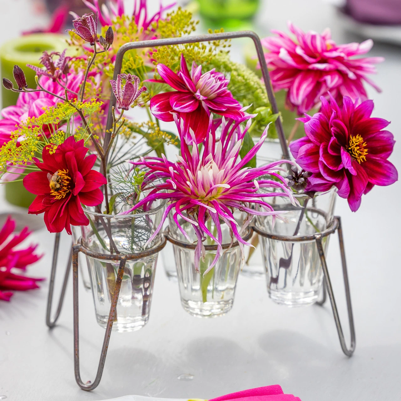 We love using this vintage chai tea holder to serve drinks or as a beautiful vase centrepiece, filled with flowers like dahlias. It is perfect paired with our glass tisaniere, serving fresh herbal tea in the glasses, there is nothing nicer than using homegrown, fresh herbs for tisanes.